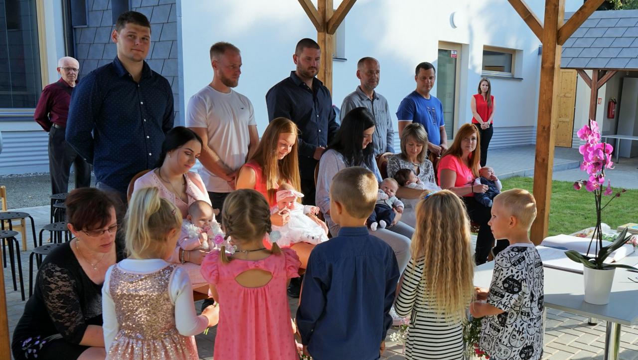 Na druhé slavnostní vítání dětí do života se v pondělí 21. září sešlo na dvoře nové školy dalších pět mladých párů se svými dětmi. Tentokrát představila obecní matrikářka panu starostovi dva kluky a tři děvčátka. Na úvod jim zazpívaly děti z mateřské školy. Potom už pan starosta pronesl svůj uvítací proslov a rodiče se podepsali do pamětní knihy. Od obce dostala každá mladá rodinka malý dárek a finanční příspěvek. Na závěr se mohl každý z nich na památku nechat vyfotografovat. Jejich obrázky se zanedlouho objeví také ve Smržickém zpravodaji.