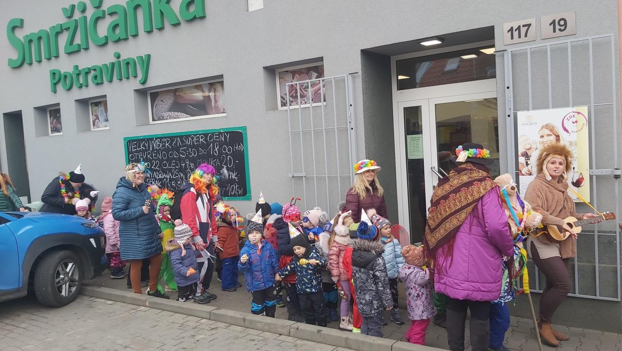 Masopustní veselí končívalo dřív průvodem vesnicí před Popeleční středou. Tato tradice se udržuje už jen v některých obcích a u nás někam zmizela. V úterý 21. února ji alespoň částečně obnovilo několik učitelek a několik desítek dětí z naší mateřské školy. Masopustní průvod se nejdříve vydal k obecnímu úřadu, kde se s dětmi pozdravili zástupci obce a rozdali dětem něco sladkého. Potom průvod pomalu obešel téměř celou obec. U domu těch rodičů, kteří se nahlásili předem, se děti zastavili a dostali něco dobrého. Děti si to celou cestu moc užívaly a z učitelů nejvíc Bc. Veronika Přikrylová, která šla v čele průvodu s maličkou kytarou a občas si s někým i zatancovala. Možná se díky tomu tradice ve Smržicích obnoví průvodem dospělých.
