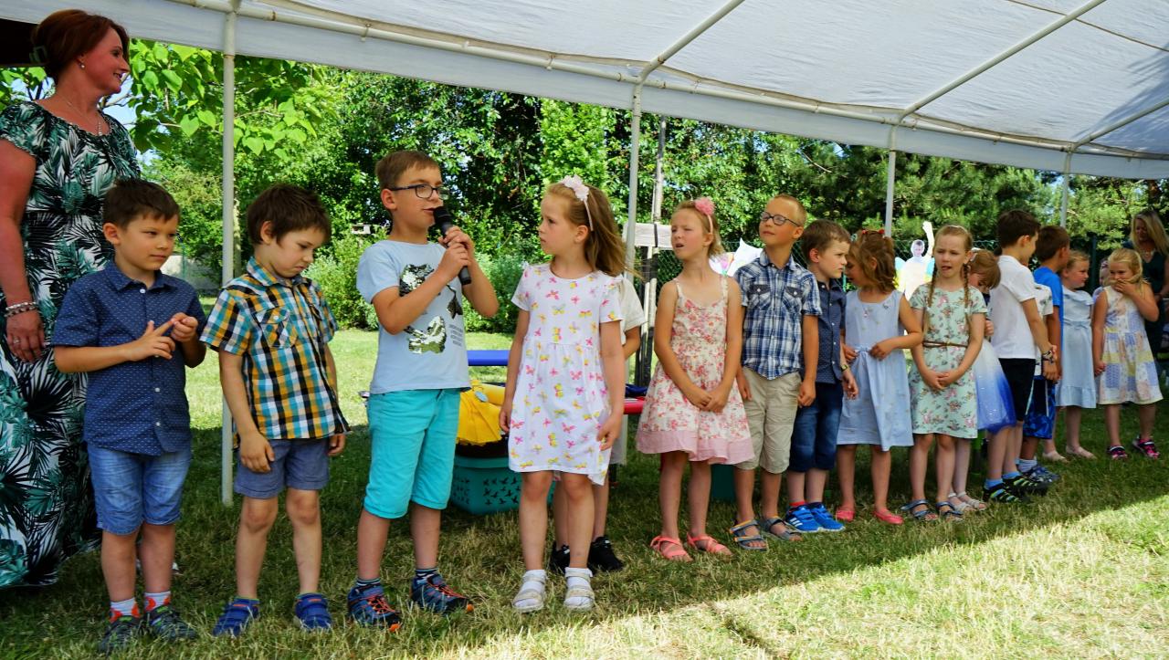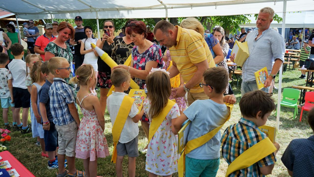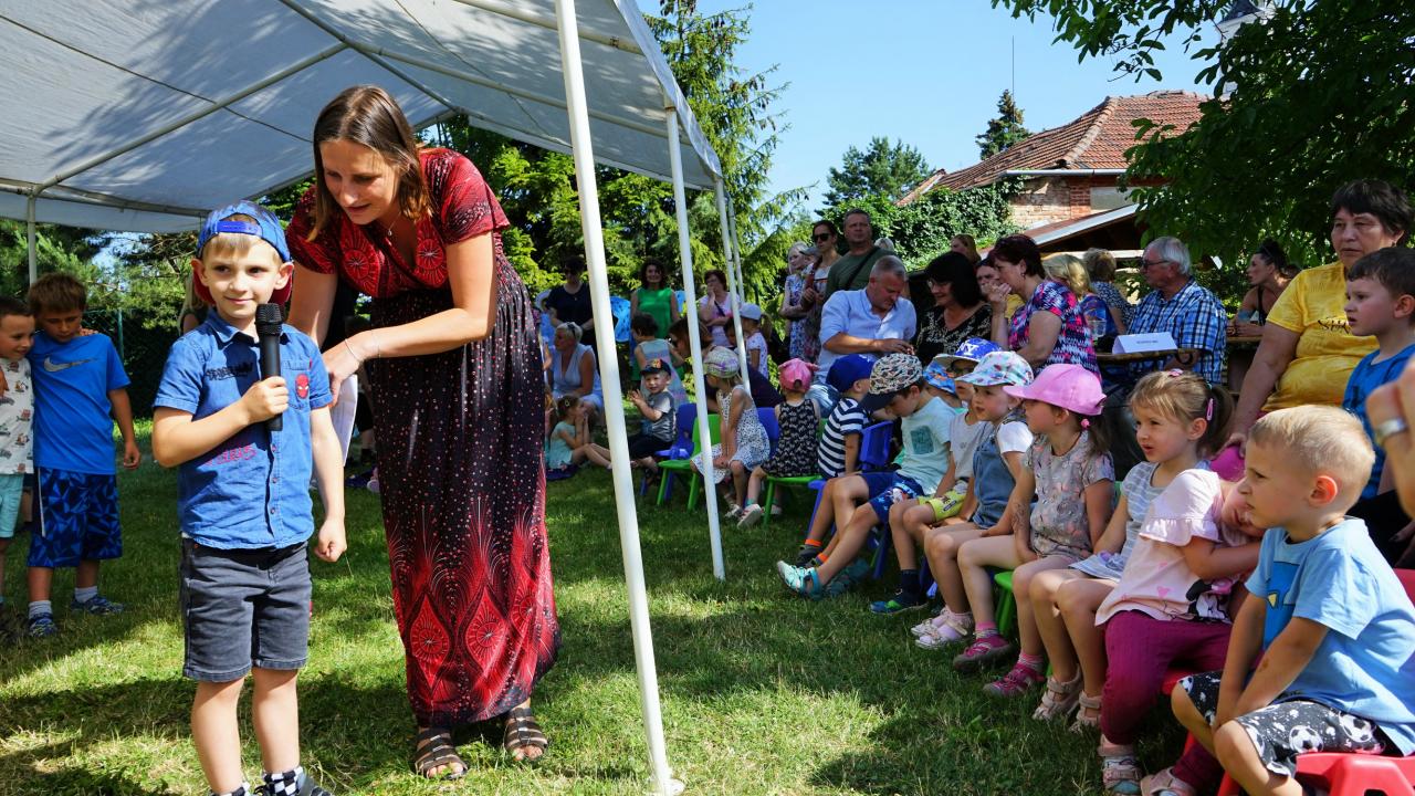 Ve čtvrtek 29. června uspořádala mateřská škola na své zahradě slavnost, při které byly předškolní děti pasovány na prvňáčky. Letos se zadařilo a do první třídy nastoupí hned 18 malých žáčků. Paní učitelky je hezky jednoho po druhém zvaly k mikrofonu. Každý z nich se všem přítomným představil a řekl o sobě něco zajímavého. Potom si předškoláčci zazpívali, byli jeden po druhém symbolicky velkou pastelkou pasováni a dostali tričko a šerpu „předškolák". Pan starosta jim popřál hezké prázdniny a aby je to od září ve škole bavilo. Díky sponzorům byla pro děti a jejich rodiče připravena bohatá tombola a občerstvení plné dobrot. Nechybělo ani tetování, malování na obličej a všichni se skvěle bavili.