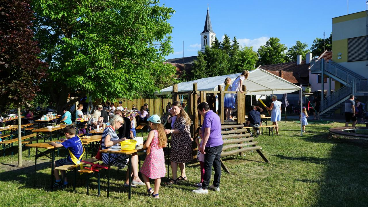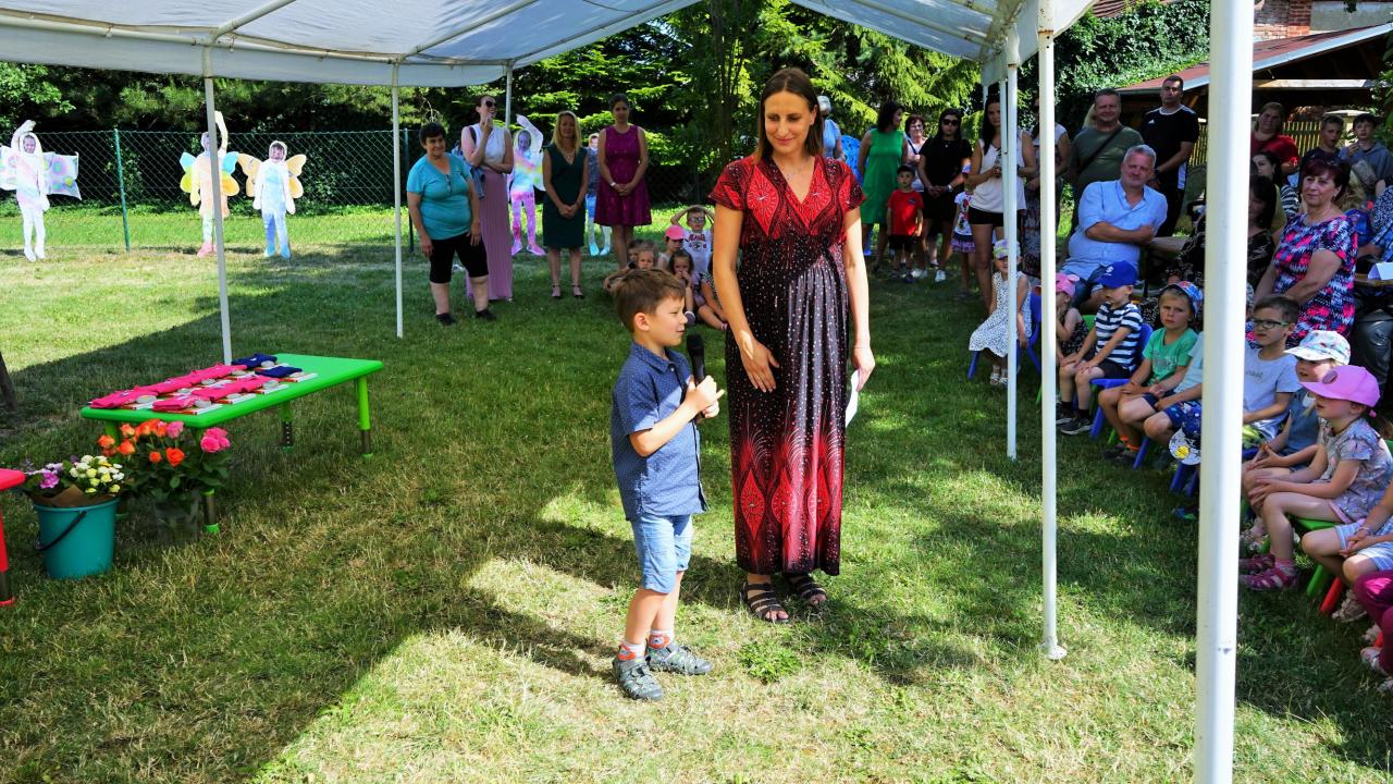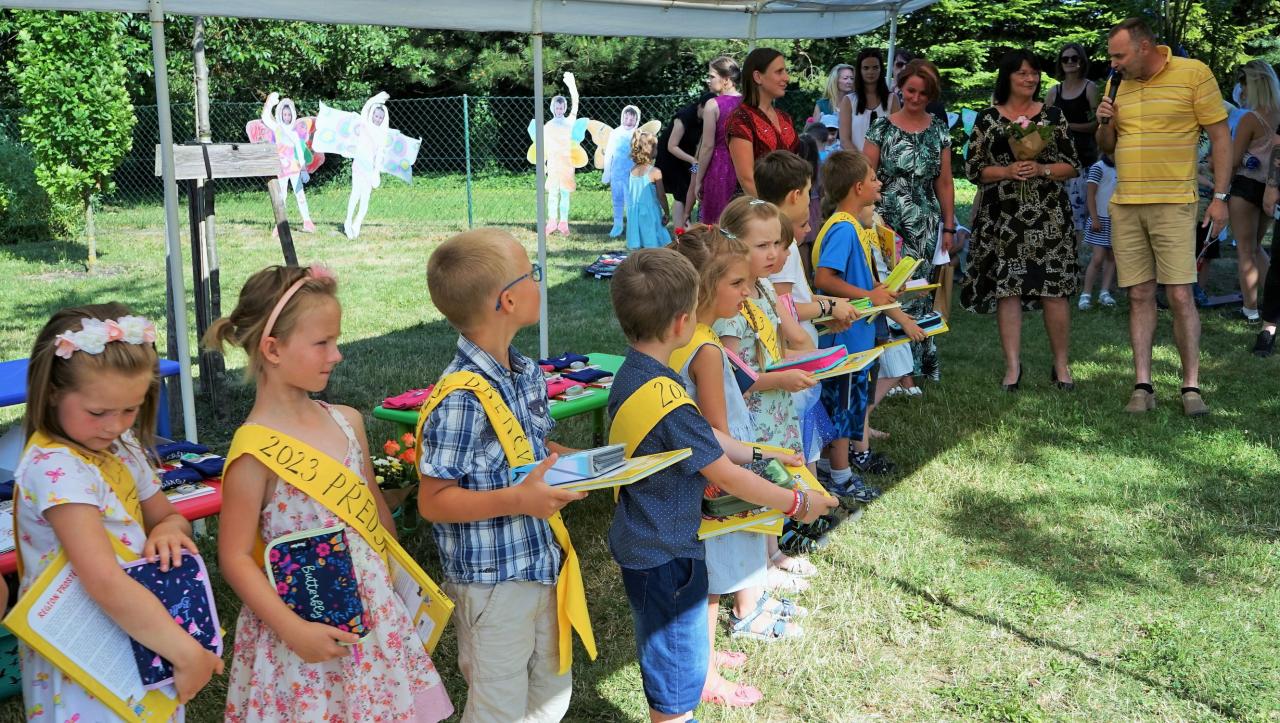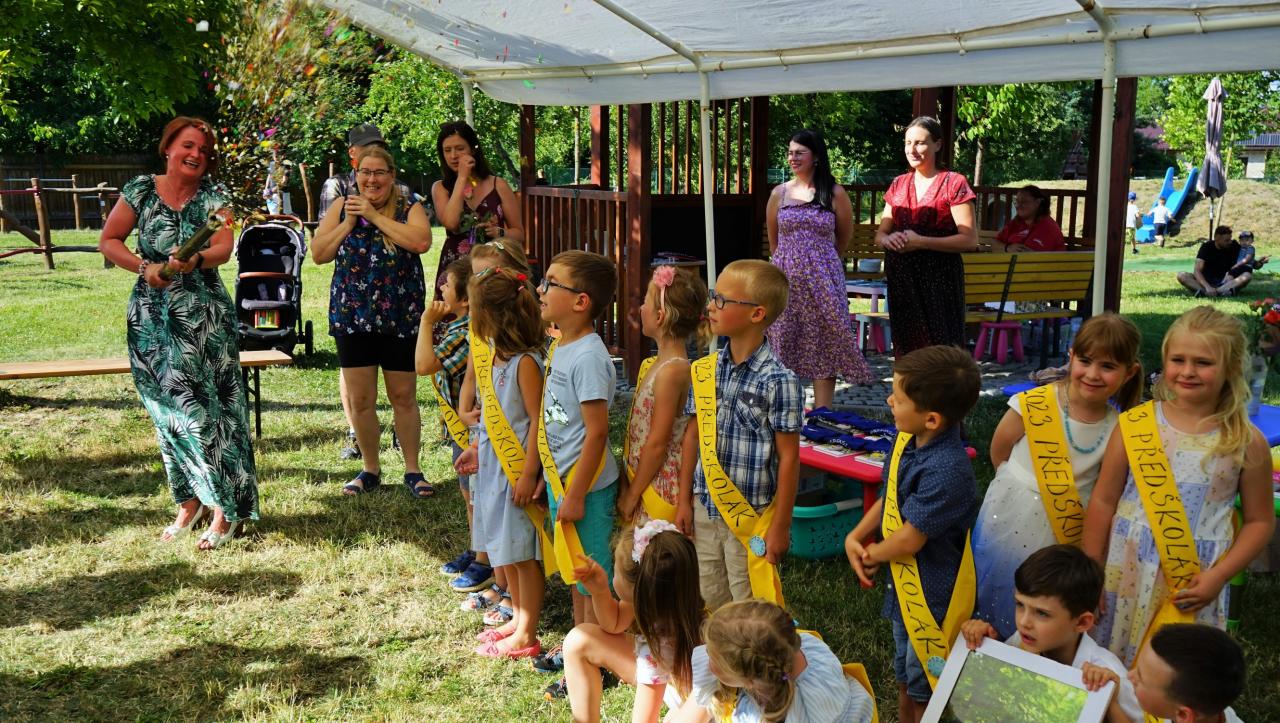 Ve čtvrtek 29. června uspořádala mateřská škola na své zahradě slavnost, při které byly předškolní děti pasovány na prvňáčky. Letos se zadařilo a do první třídy nastoupí hned 18 malých žáčků. Paní učitelky je hezky jednoho po druhém zvaly k mikrofonu. Každý z nich se všem přítomným představil a řekl o sobě něco zajímavého. Potom si předškoláčci zazpívali, byli jeden po druhém symbolicky velkou pastelkou pasováni a dostali tričko a šerpu „předškolák". Pan starosta jim popřál hezké prázdniny a aby je to od září ve škole bavilo. Díky sponzorům byla pro děti a jejich rodiče připravena bohatá tombola a občerstvení plné dobrot. Nechybělo ani tetování, malování na obličej a všichni se skvěle bavili.
